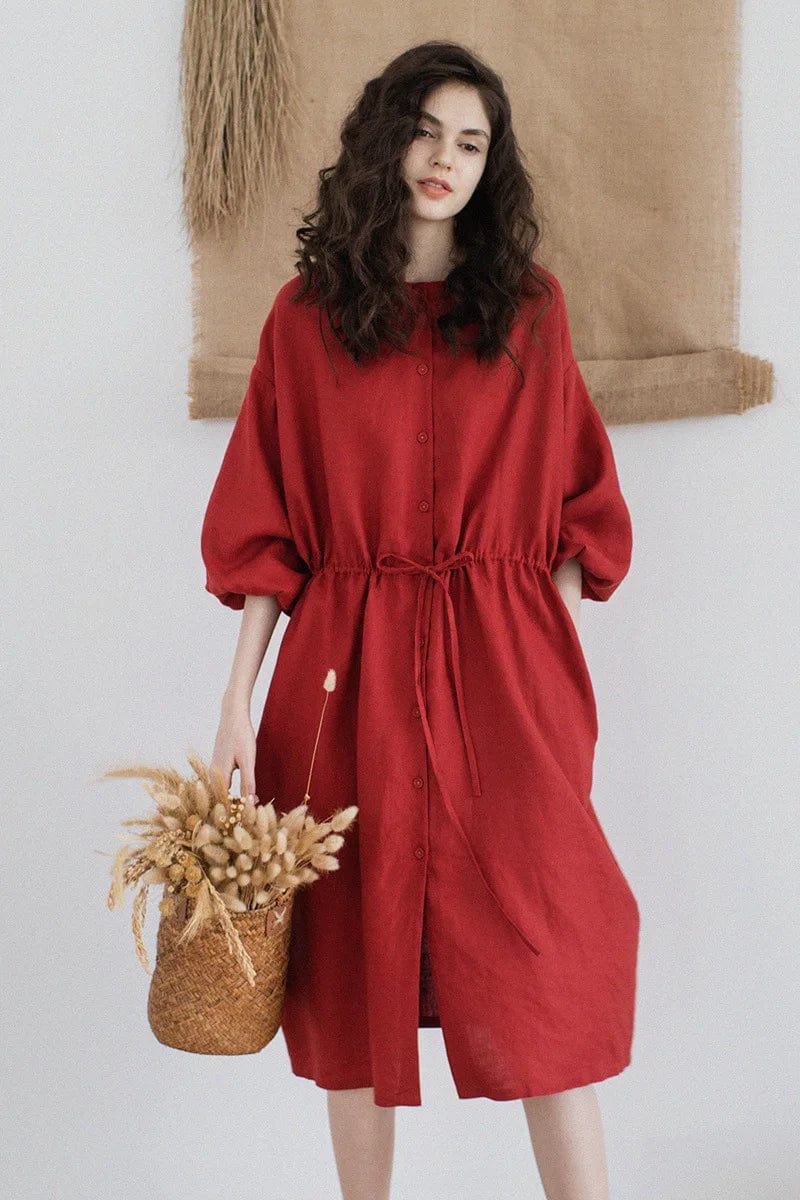 Get ready to turn heads this summer with our New Cotton Linen Red Dress! Made with the softest cotton and breathable linen, it's the perfect choice for a hot day. Let the vibrant red color make a statement while you stay cool and comfortable. It's the ultimate combination of style and practicality for the season. Don't miss out on this must-have dress for your warm weather wardrobe!