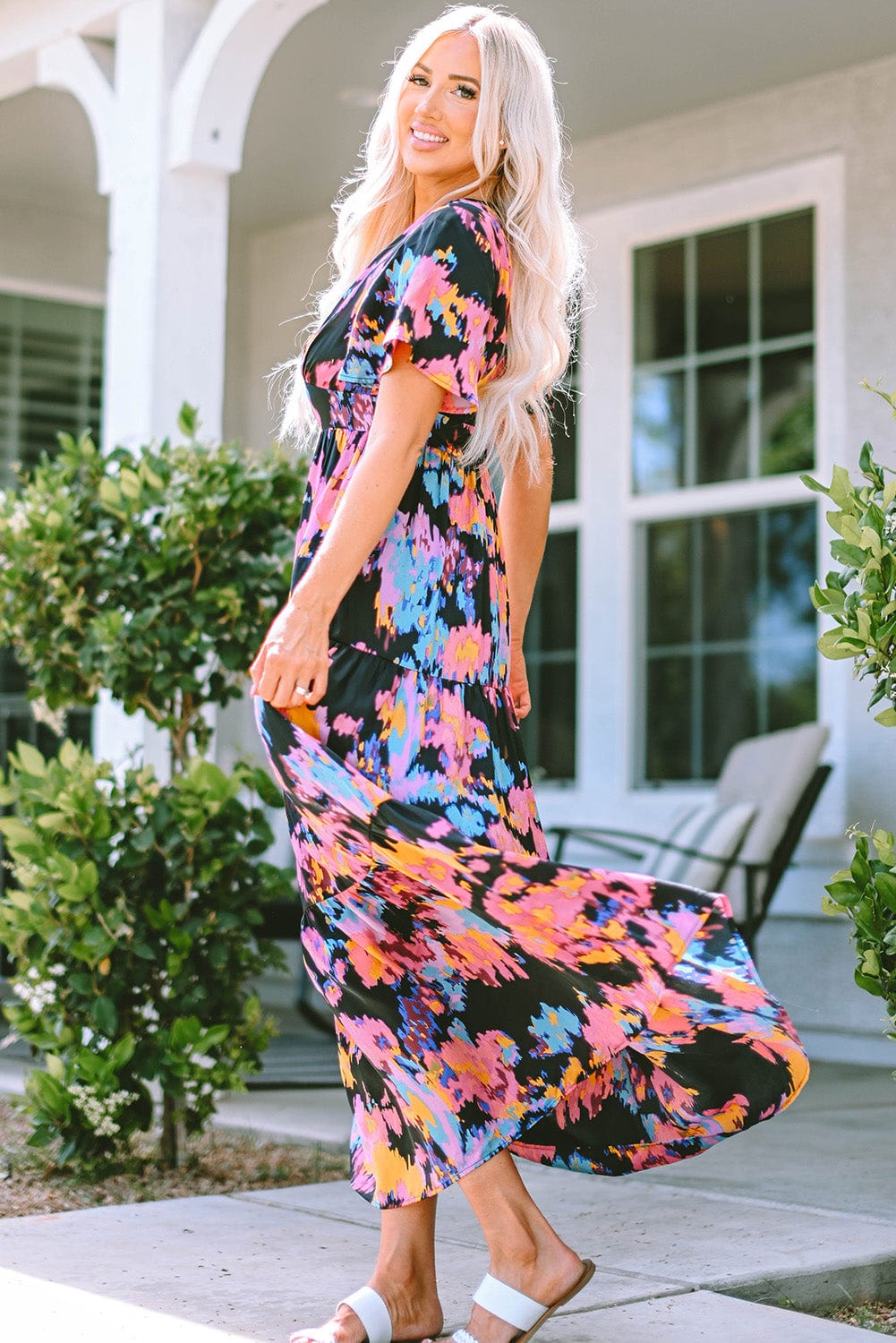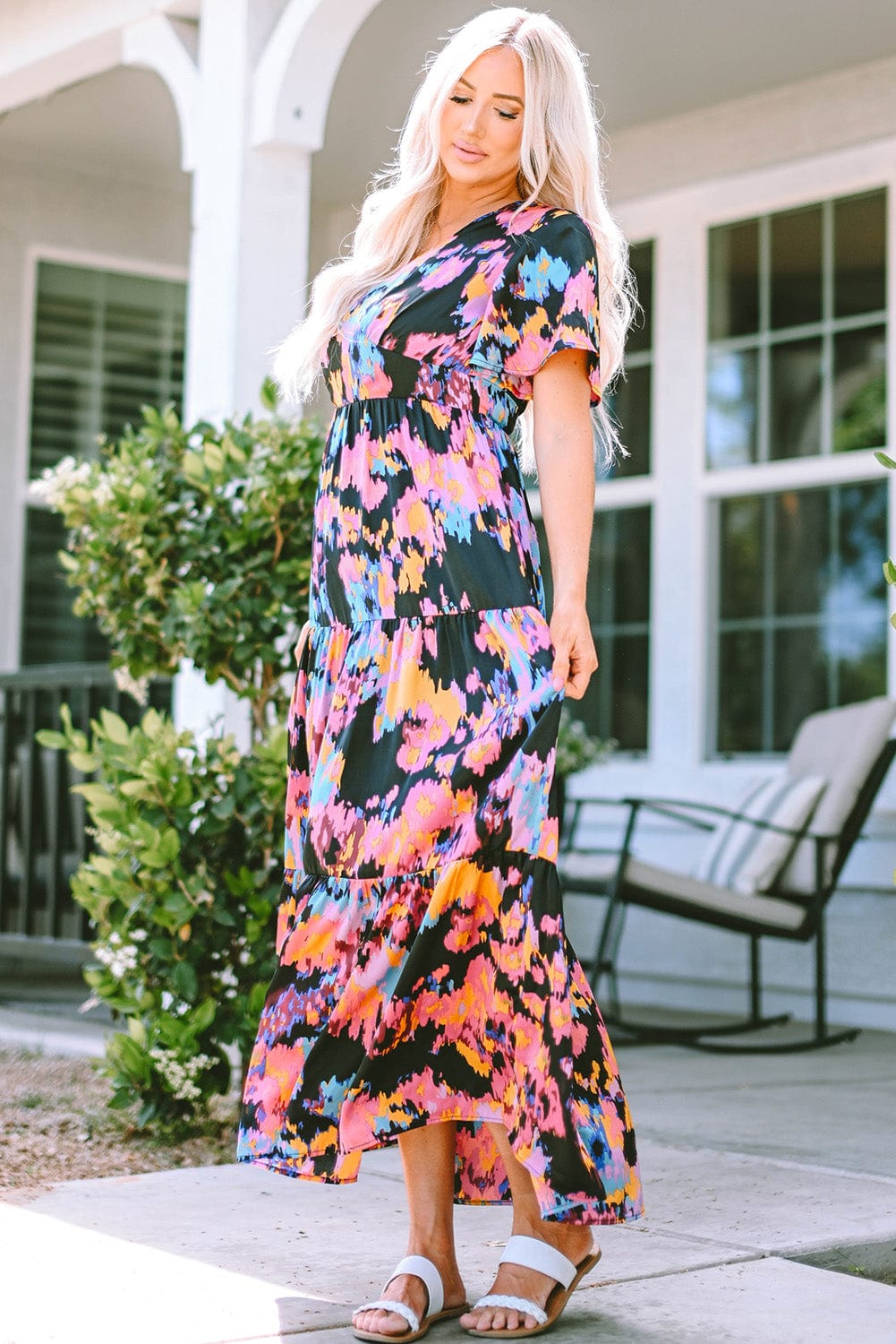 - This abstract floral pattern maxi dress will keep you attractive and elegant