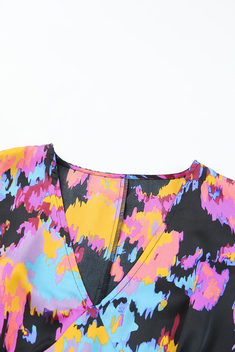 - It features a v-neck, flutter sleeves, and cinched at the waist