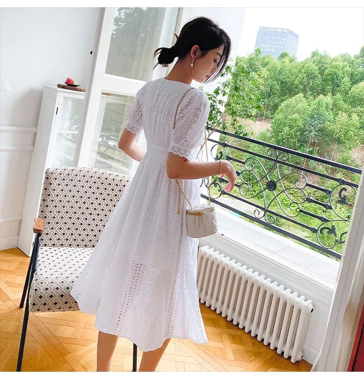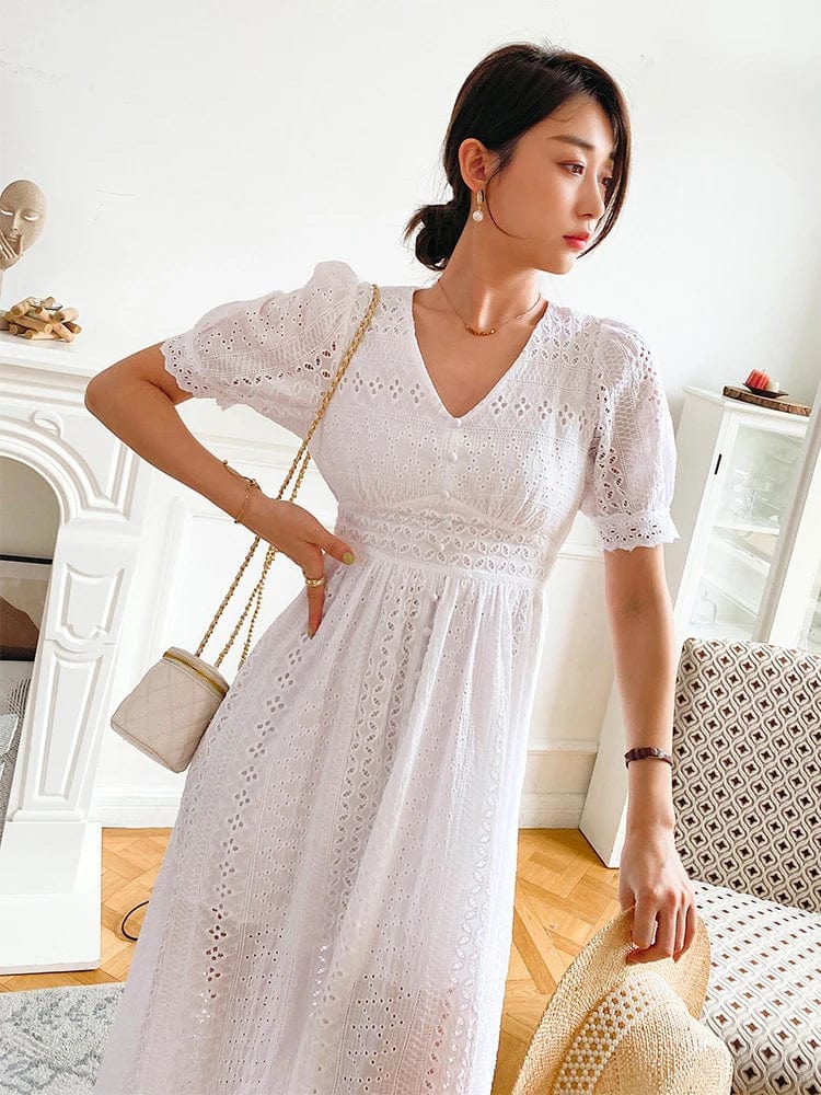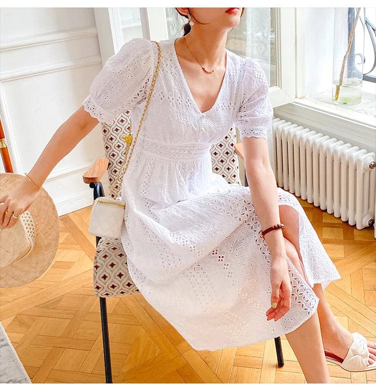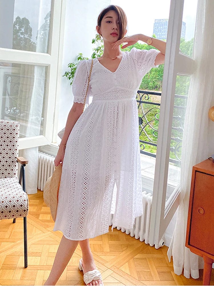 Pretty puff sleeve style dress Add a touch of sophistication to any special occasion with this timeless classic. With its combination of elegance and style, this dress is sure to make a statement.