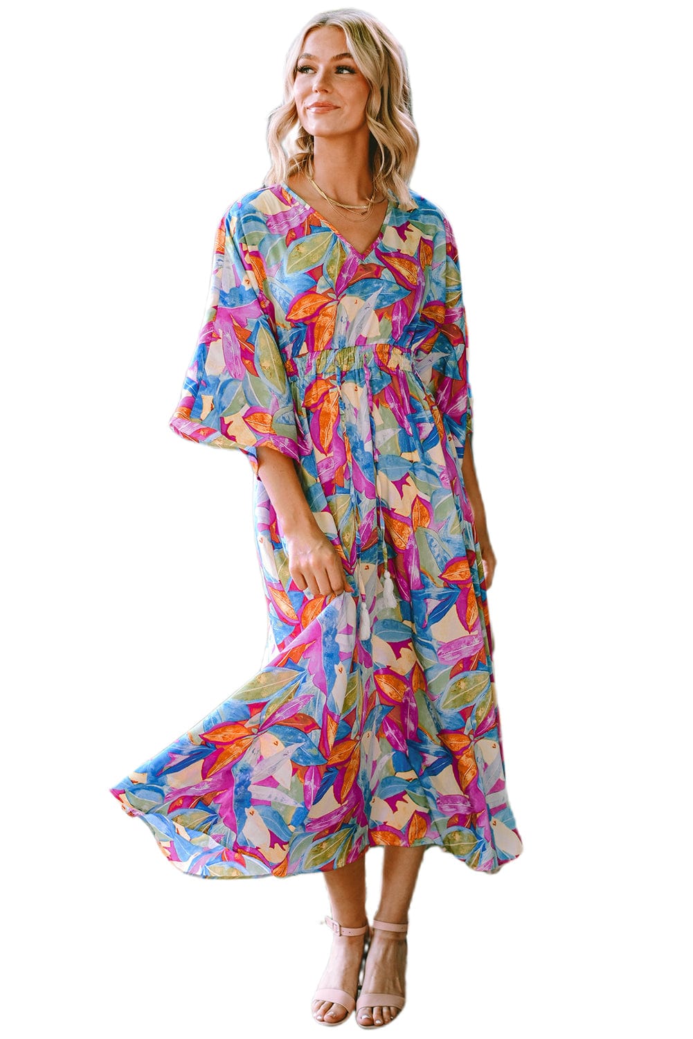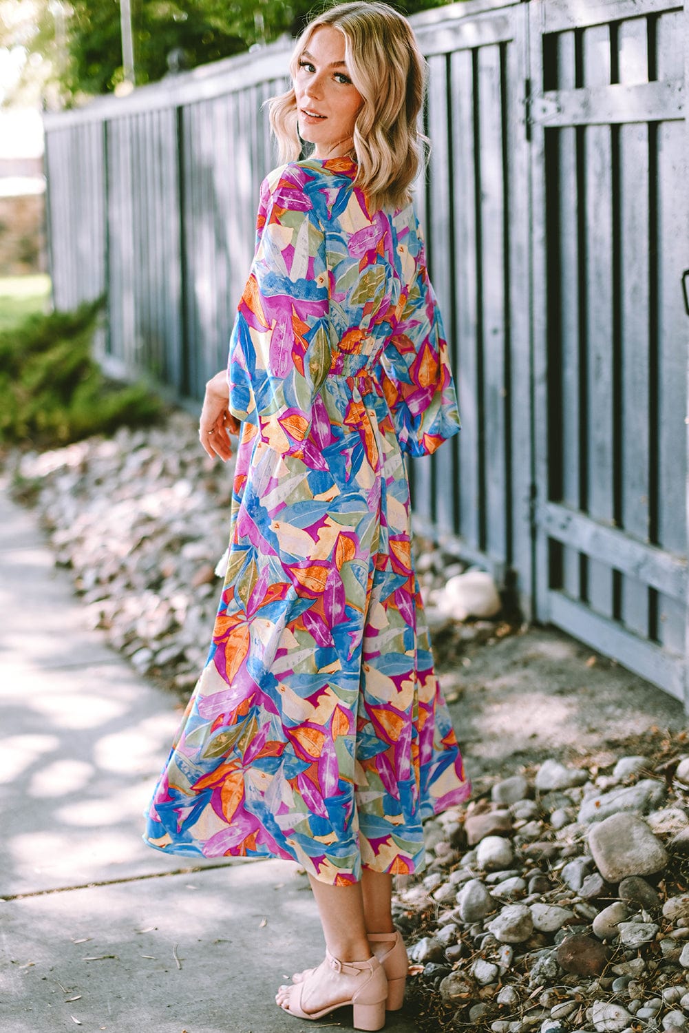 Embrace stunning style with Annie's Love Multicolour Abstract Print High Waist V Neck Maxi Dress. The abstract print forms a wearable art piece that will make you stand out. The high waist design provides a slimming effect while the elegant V-neckline accentuates your feminine silhouette. Experience comfort and relaxation with the flowy maxi length.