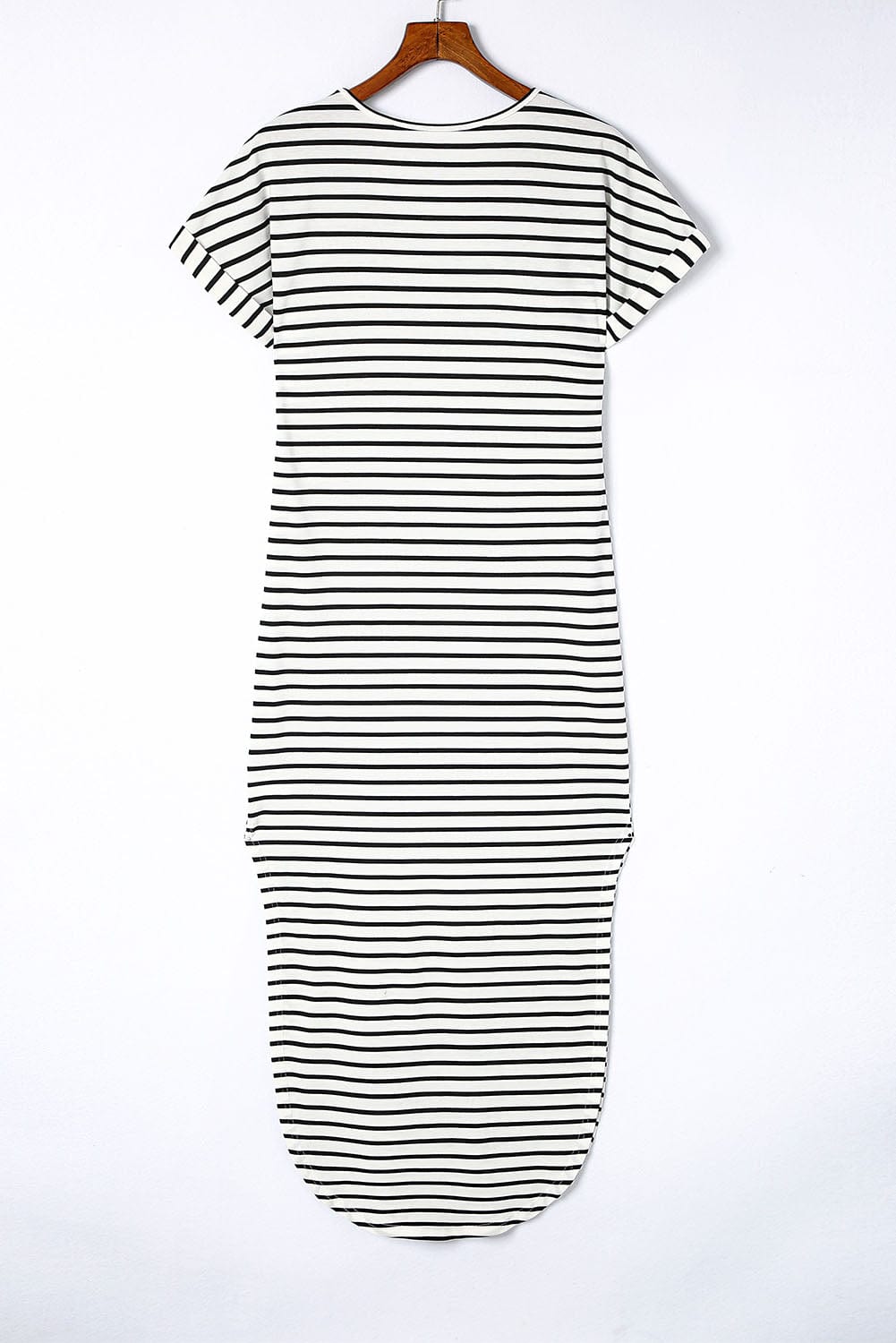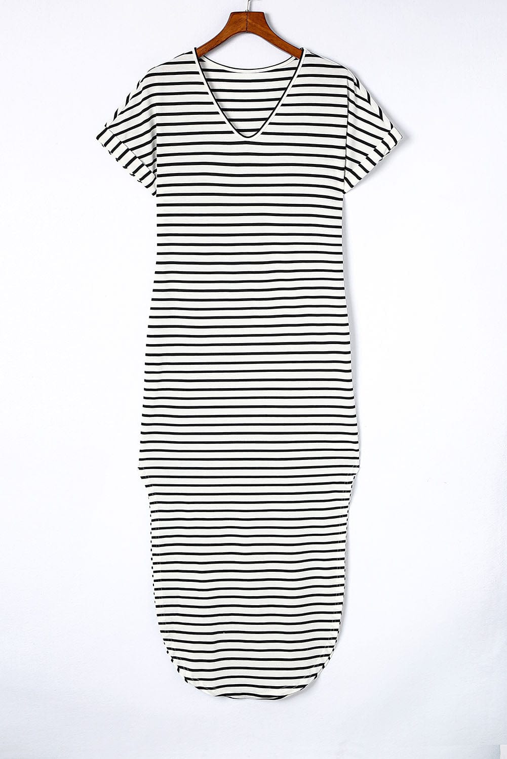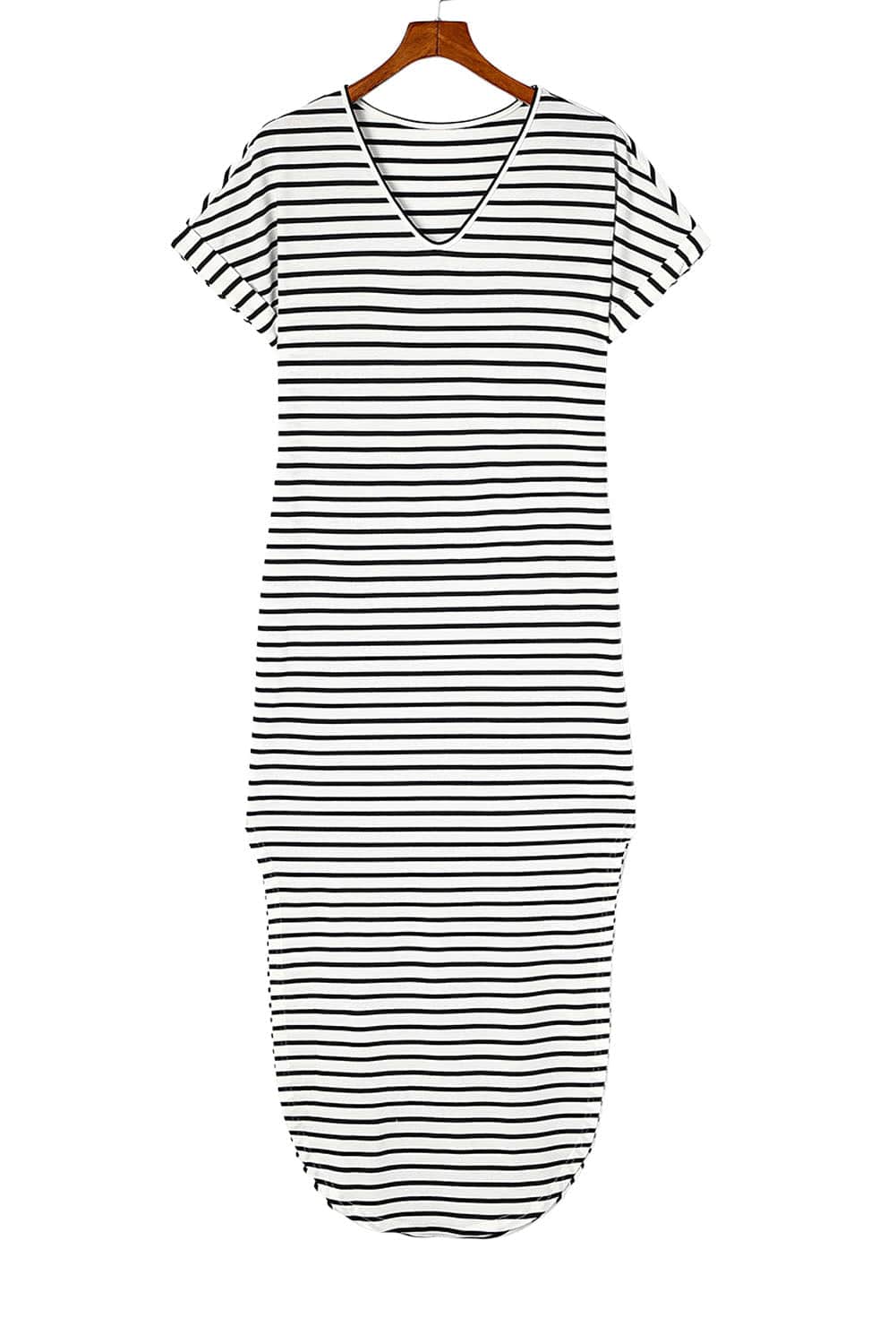 This maxi dress features a timeless striped print that is sure to catch attention. The loose fit silhouette flatters most body shapes, while the side slits elongate the legs. Made from lightweight and breathable fabric, it's the perfect summer staple. Pair it with simple accessories for an effortlessly chic look.