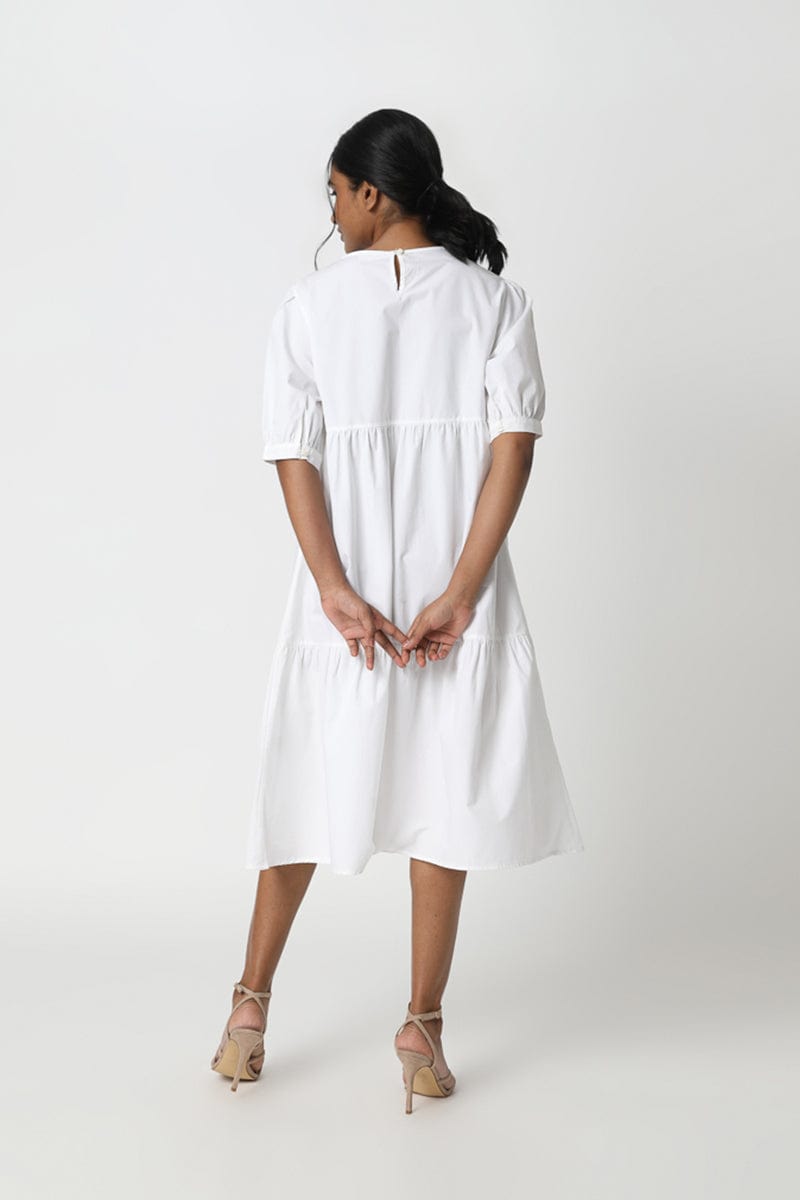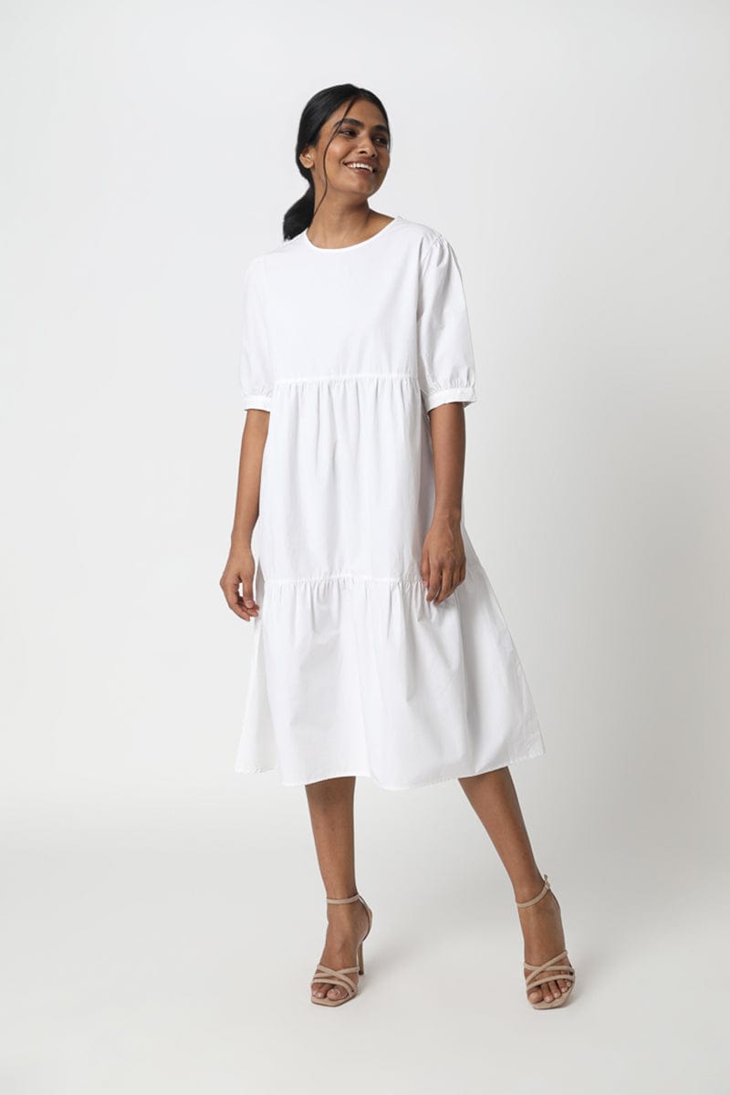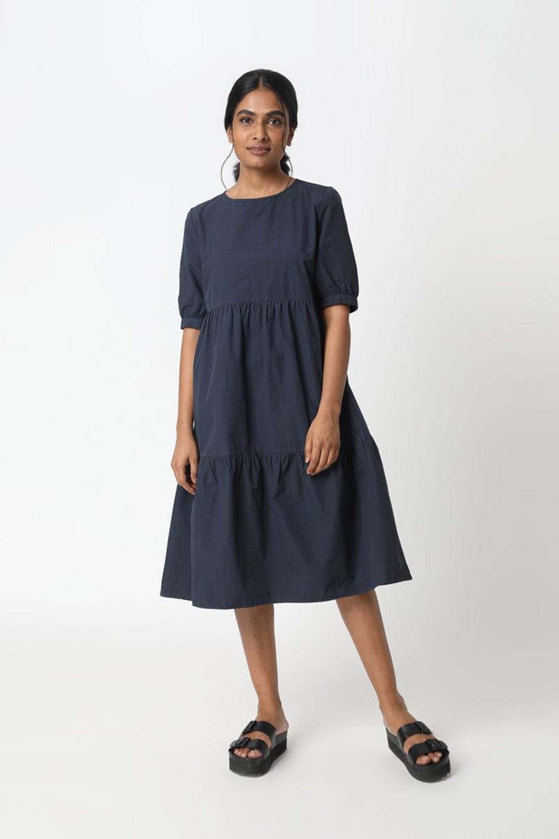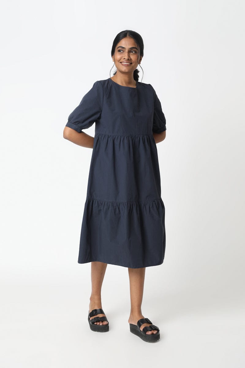 - Sometimes, you can have it all. This dress merges the best of minimalist-chic style and total comfort. Featuring a round neckline and hemline below the knee. Fabricated in 100% organic cotton and manufactured in a female owned factory in the EU.