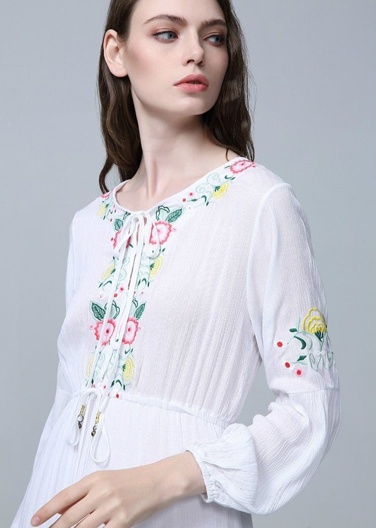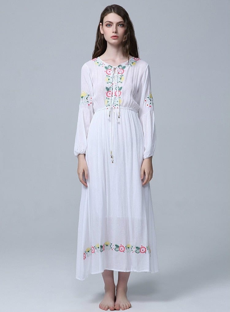 • The Perfect Summer White Cotton Embroidery Maxi Dress
