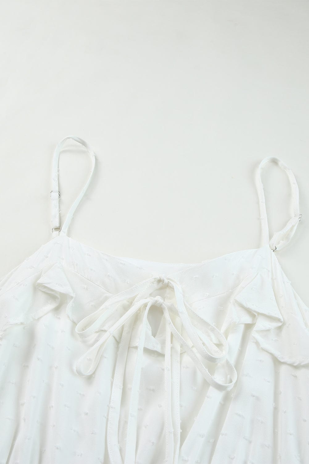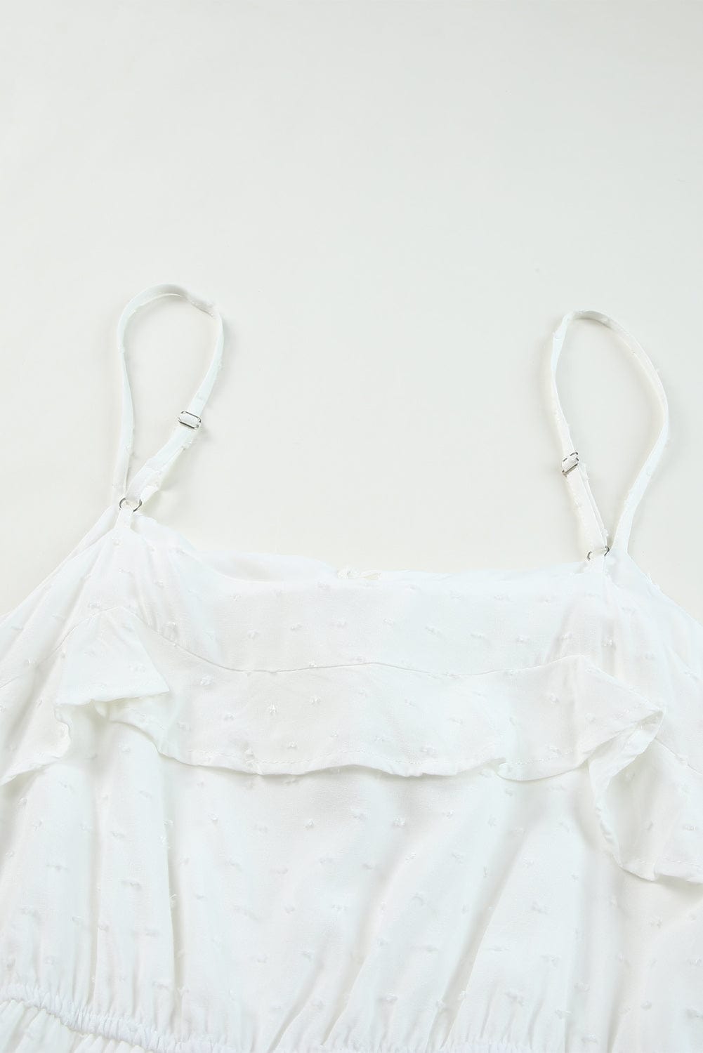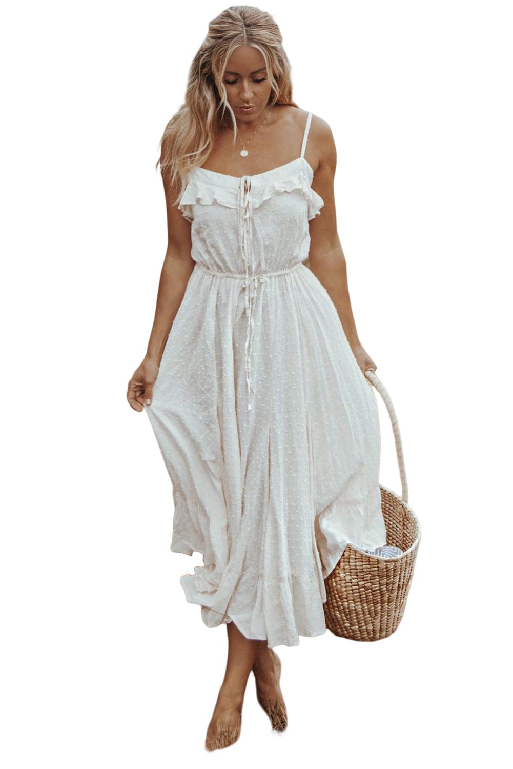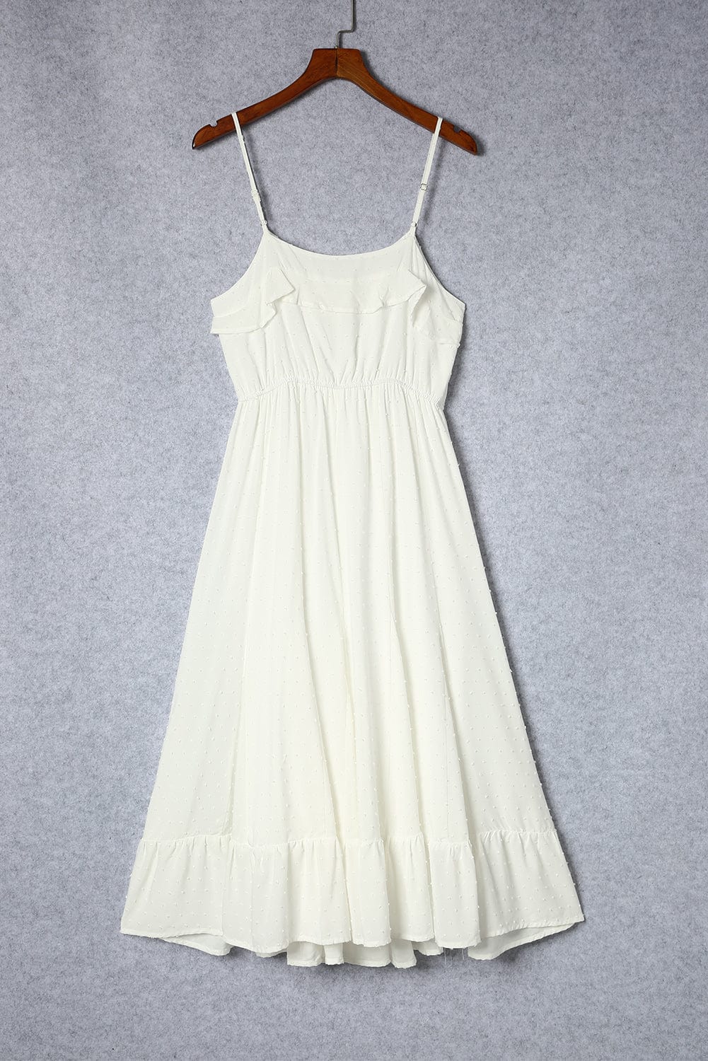 White Swiss Dot Spaghetti Straps Ruffled Maxi Dress